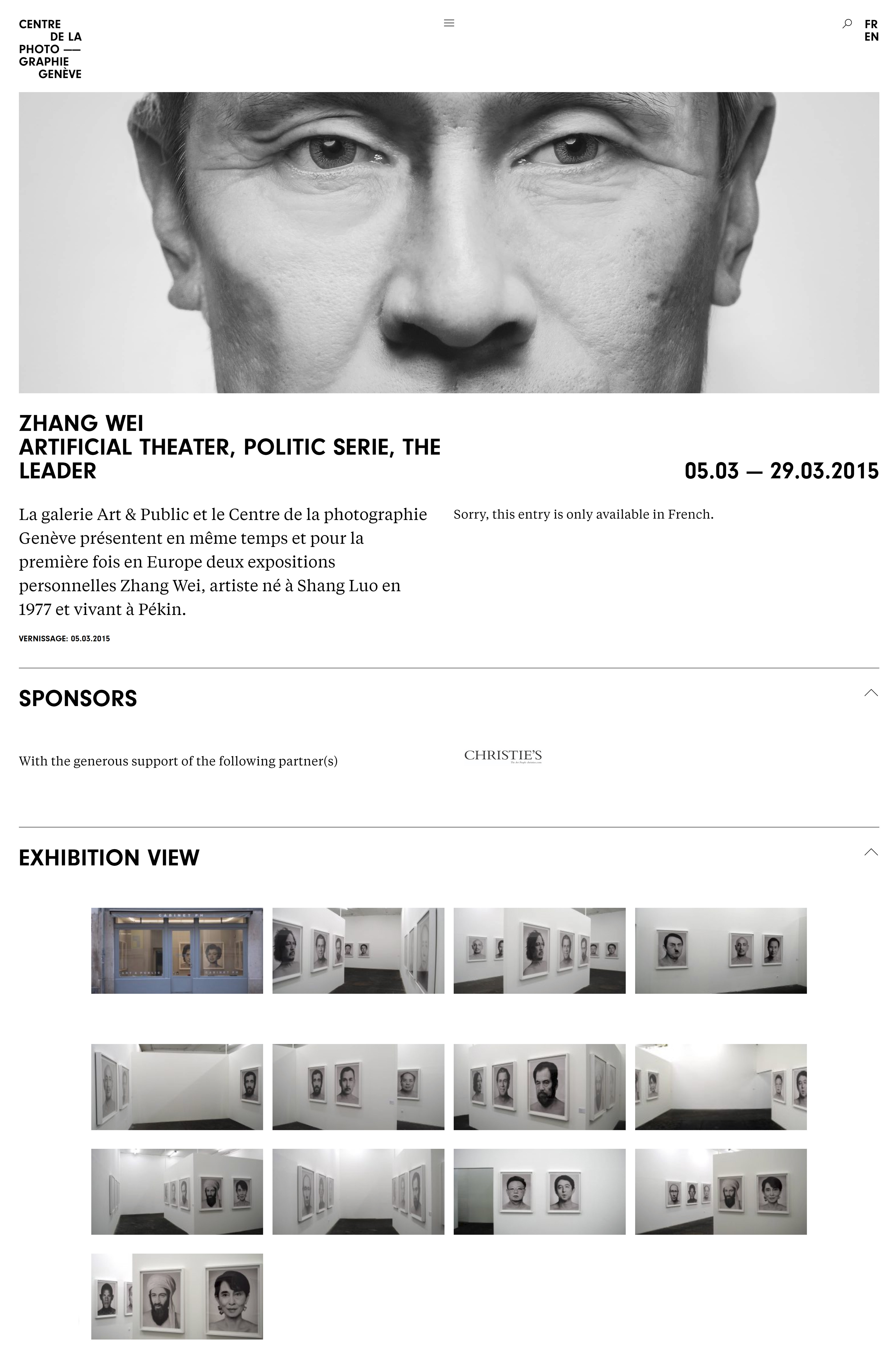 La galerie Art & Public et le Centre de la photographie Genève présentent en même temps et pour la première fois en Europe deux expositions personnelles Zhang Wei, artiste né à Shang Luo en 1977 et vivant à Pékin.